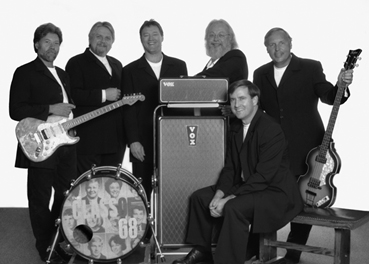 Eventually, the black t-shirts gave way to “real” stage clothes as pictured in the band’s first promo picture. The jackets were replicas of the jacket Ringo Starr wore on the cover of the Abbey Road album cover based on the English “Frock Coat.” Pictured left to right are Dave Steffen, Jim Bartholomew, Gordon Rinda, Woody Johnson, Steve Wild and seated Brian Secord (Steve’s son in law).